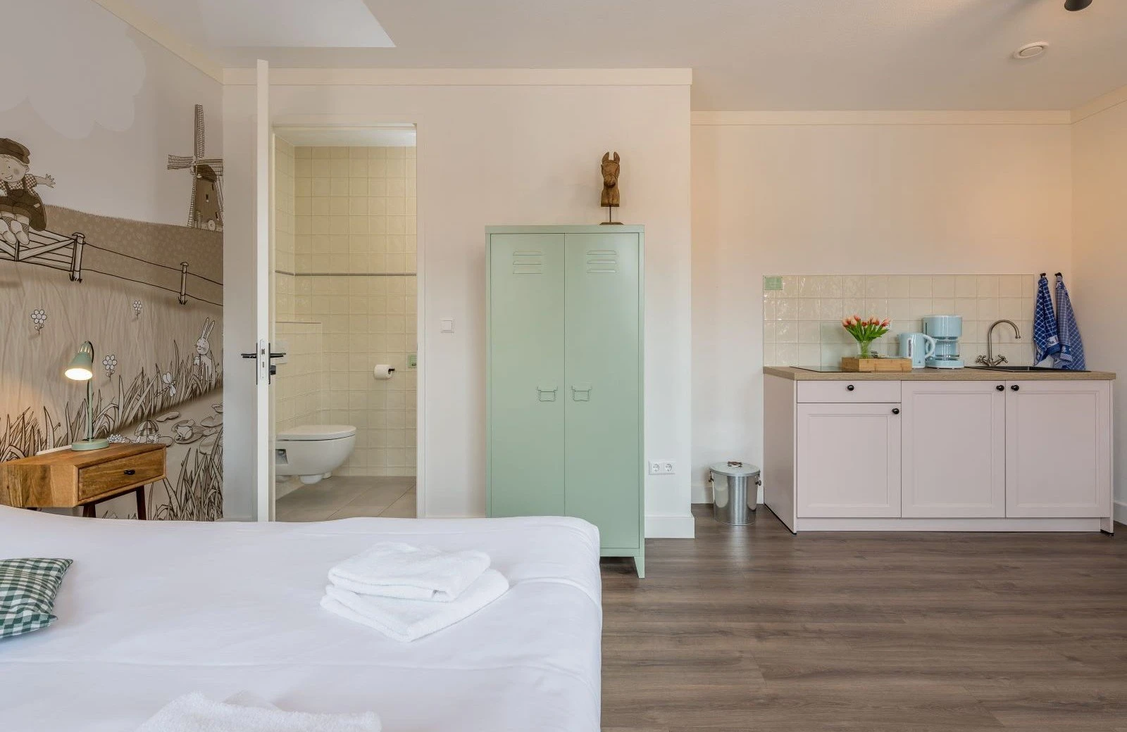 The Stip de Pony studios are part of an overview of connected accommodations. The studios consist of one room and are a perfect place for a holiday with a small group. The interior of the studios is entirely in Stip de Pony style. You will find everything about the mischievous Stip the Pony.