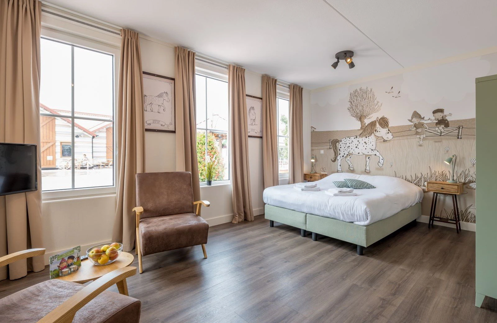 The theme of the accommodation displayed may vary depending on the vacation stay. We have accommodations with themes like Stip the Pony and Aagje the Chicken.