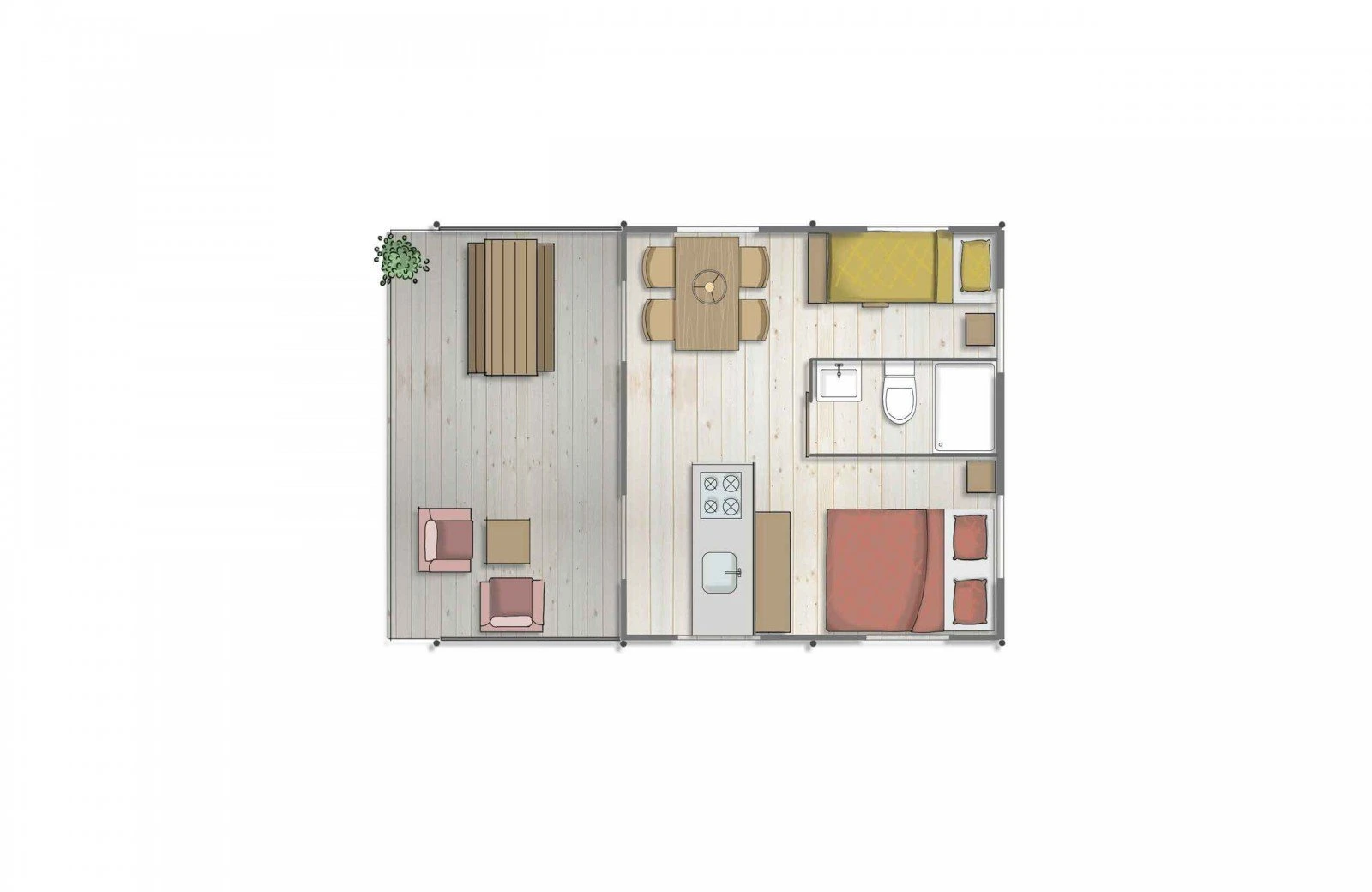 Genieten van de frisse polderlucht? Sla de tentdoek open en laat jezelf heerlijk wegzakken op de loungestoelen met een goed boek of speel gezellig een spelletje aan de picknicktafel. De veranda is afgesloten met een hekje, waardoor de jonge avonturiers veilig kunnen spelen.