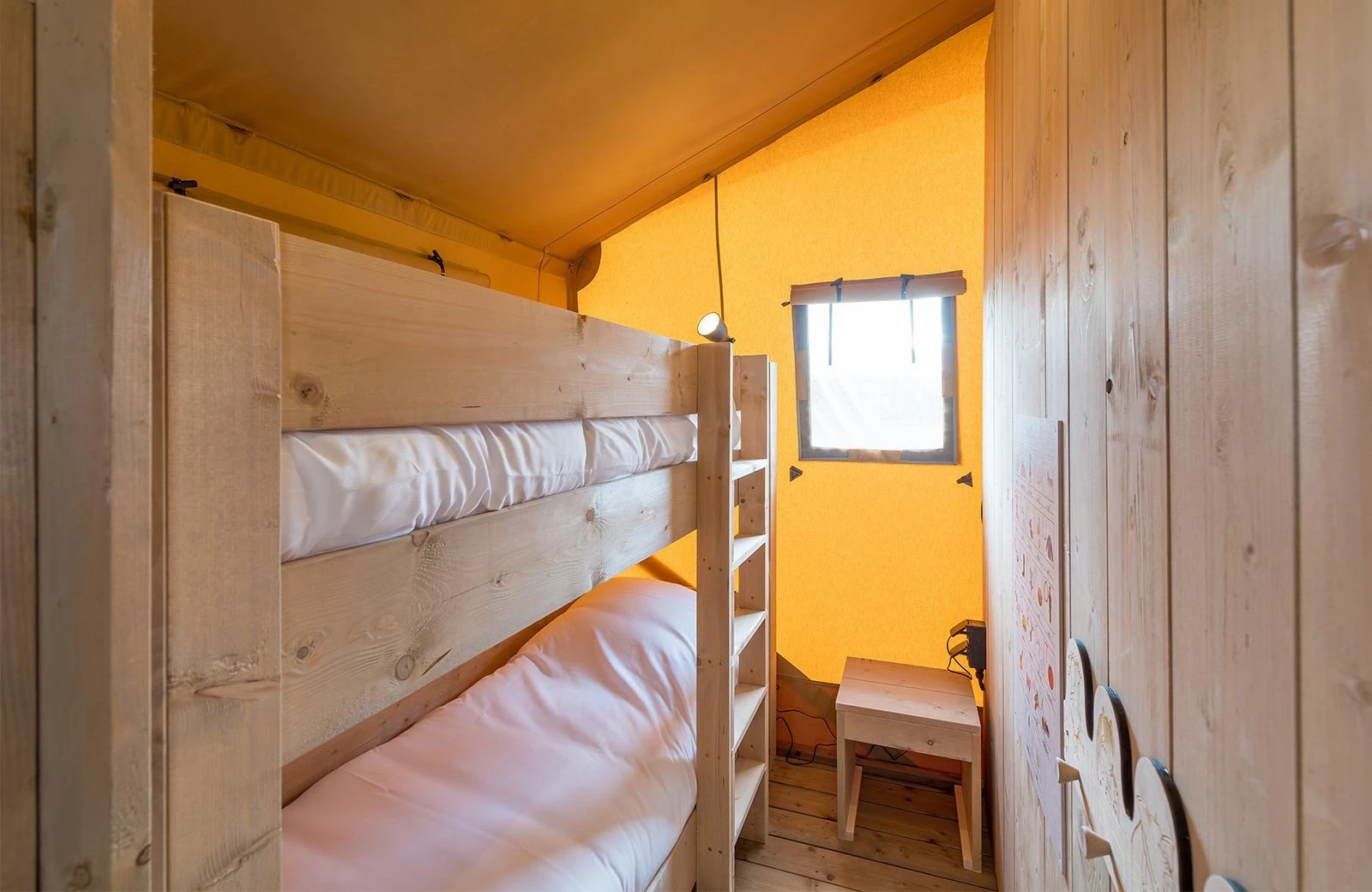 Wil je liever één nachtje avontuurlijk verblijven bij Familie Resort Molenwaard? Kies dan voor een van onze Avonturentent Hotel. Ervaar de luxe van een huisje én het plezier van kamperen, in de sfeervolle Avonturentent. Door het overdekte terras loopt de buitenruimte naadloos over in de binnenruimte. Zo geniet je samen van dat heerlijke vrije kampeergevoel, met extra comfort.