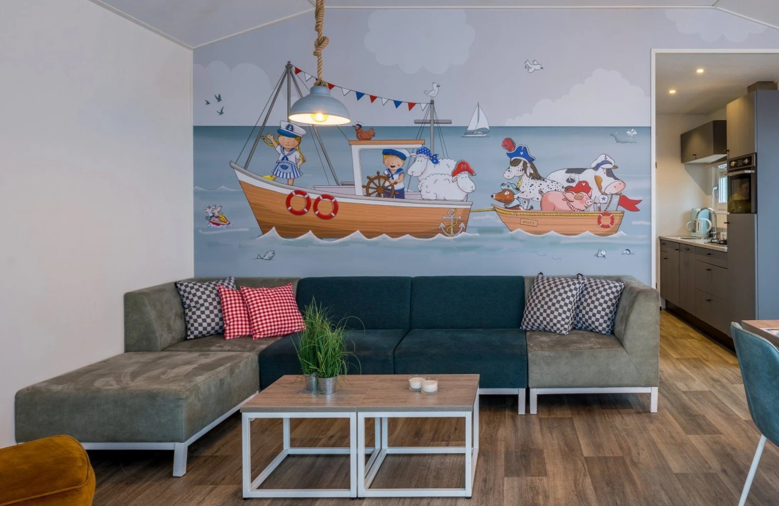 Family Resort Molenwaard offers 11 charming Fien & Teun Skipper's Cottages, each accommodating up to 6 persons. Enjoy the fresh breeze from the adjacent natural lake and immerse yourself in the world of Fien & Teun. The house is fully themed, making you feel like Fien and Teun are taking you on a cozy skipper's adventure in their cabin.