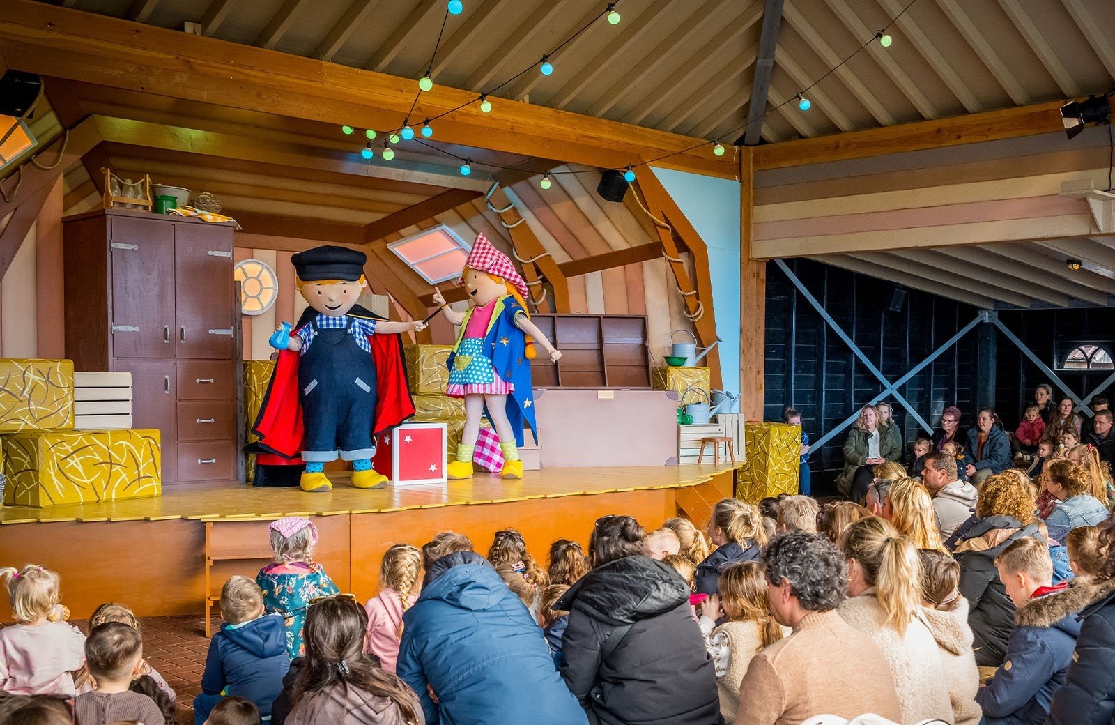 Outside the accommodation, you can enjoy exciting adventures together! Across the street, you'll find the petting zoo and greenhouse, where you can enjoy plenty of entertainment. A few times a week, you can watch the spectacular parade with all the Molenwaard friends, including, of course, Fien and Teun, and many more animal friends! Our youngest friends can have a blast at the resort.