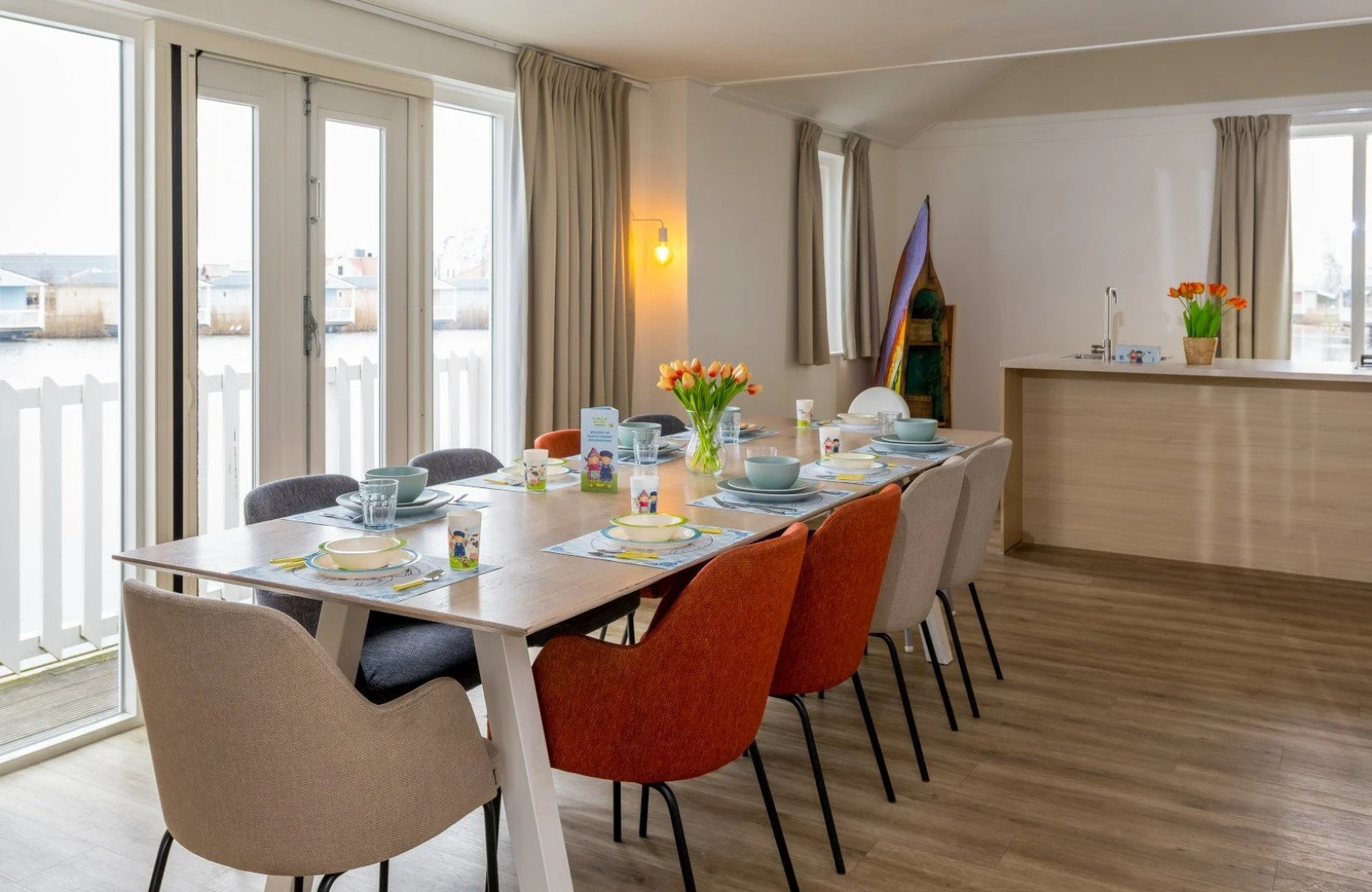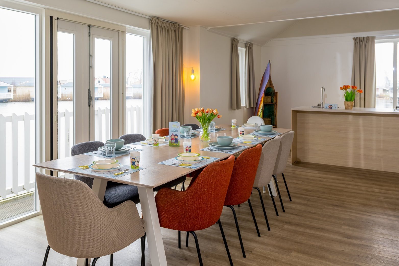 Set the sails and bring the whole family to the spacious Fien & Teun Skipper’s Villa 10p. Located by a natural lake, this accommodation offers a fresh start full of water fun every day!
