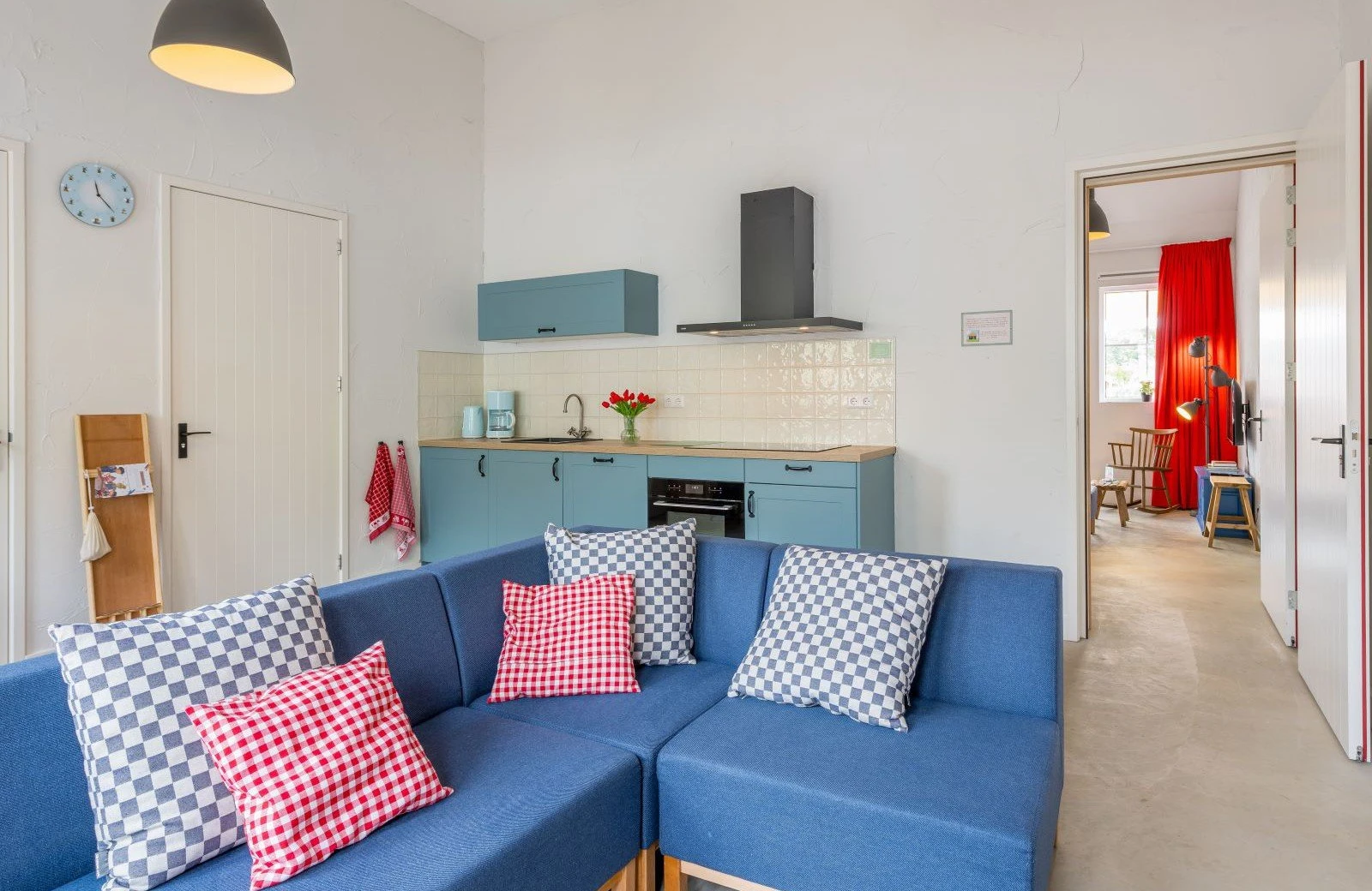 Family Resort Molenwaard has one Hayrick, with two apartments. With this booking, the apartments are connected to form one large wheelchair-accessible apartment. So you have two separate living rooms with complete privacy, but you can also walk in together. Cosiness all around!