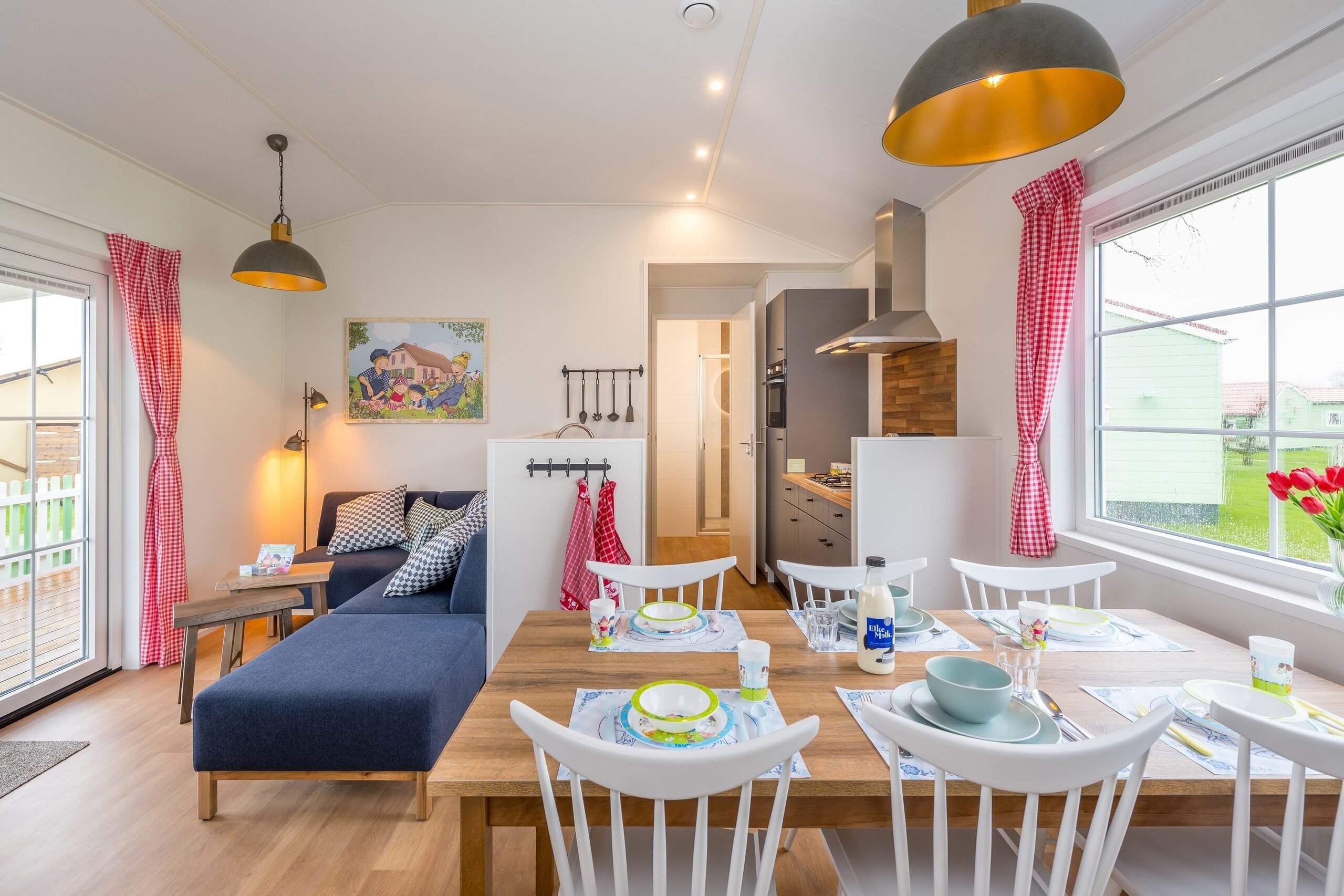 Family Resort Molenwaard offers 8 Luxury Fien & Teun Farmhouses, situated in the heart of the park. The farmhouses are ideal accommodations for families with (young) children who love even more comfort. This cheerful, detached Farmhouse has air conditioning and is fully themed; every detail is just right. You'll feel like you're staying in a real luxury farmhouse.