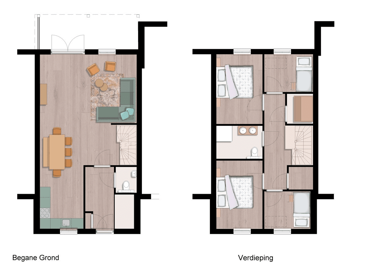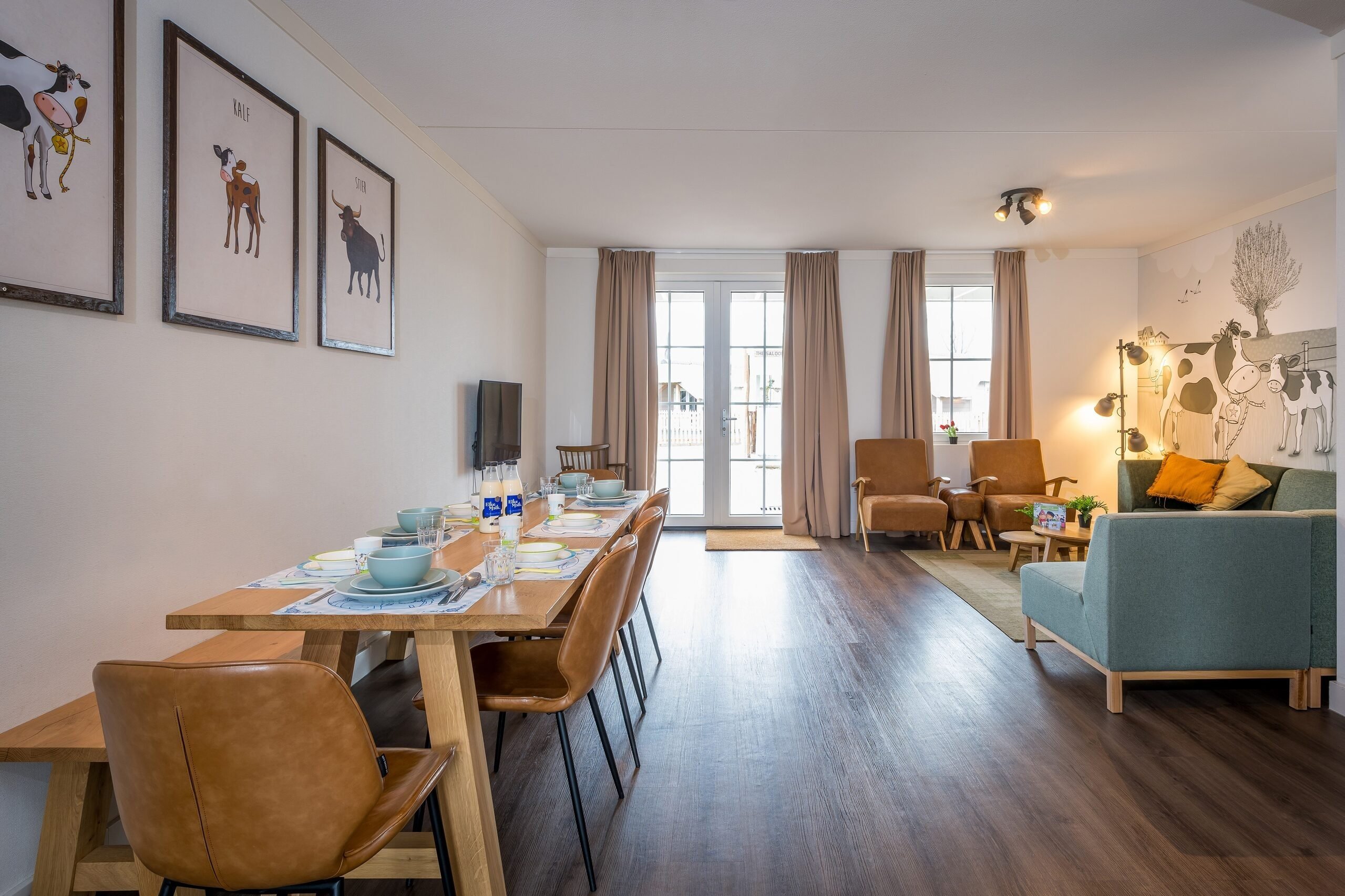 This accommodation is part of a row of attached houses. The Luxury Village Street (8 persons) consists of two floors and is equipped with all modern conveniences. The house is fully furnished in Rosa the cow style and has a cosy living room with sitting and dining area. Are you staying in this accommodation? Then be surprised by an accommodation full of cow patches.