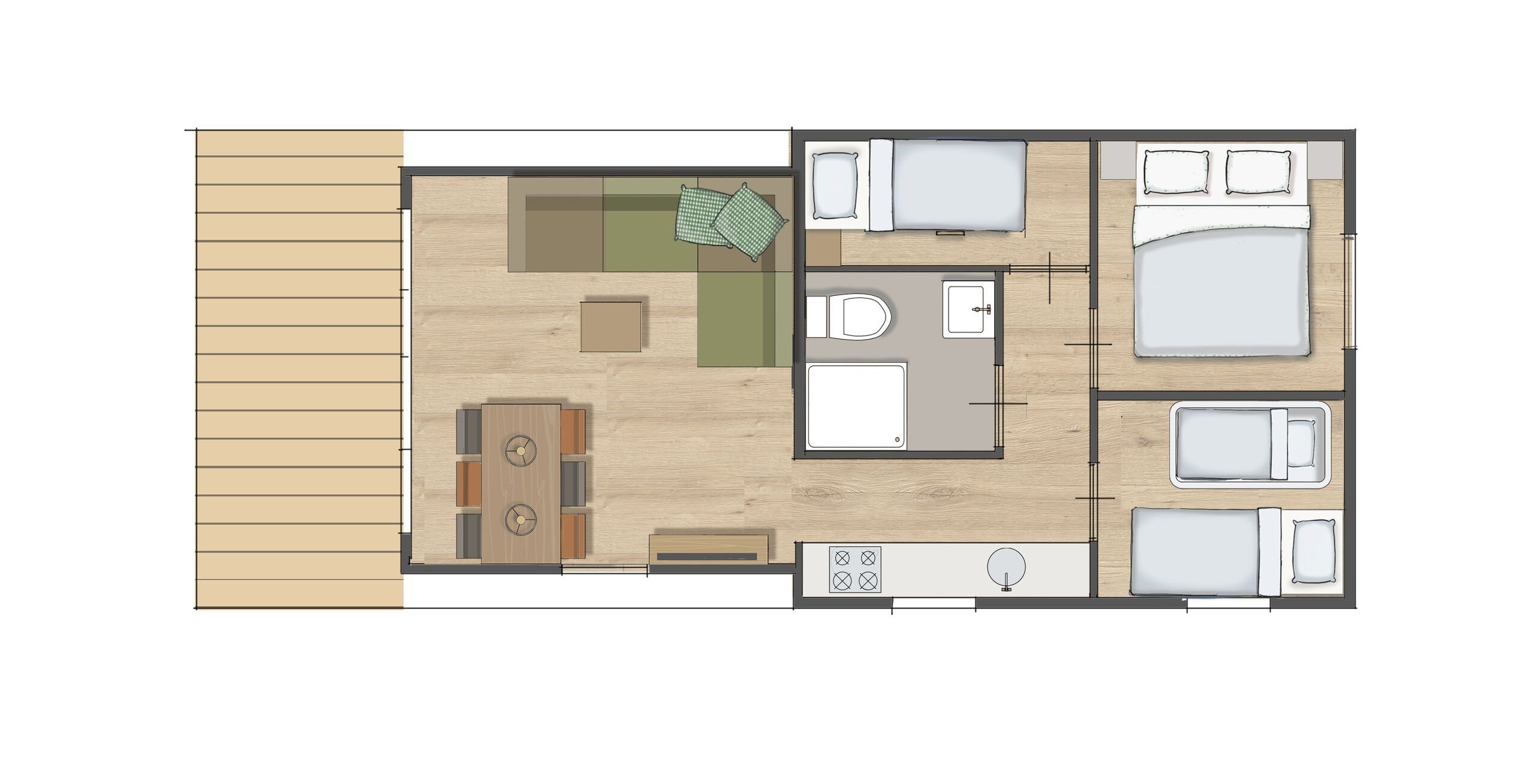 - Bedroom(s) bunk bed with Swiss Sense mattresses (80x200)