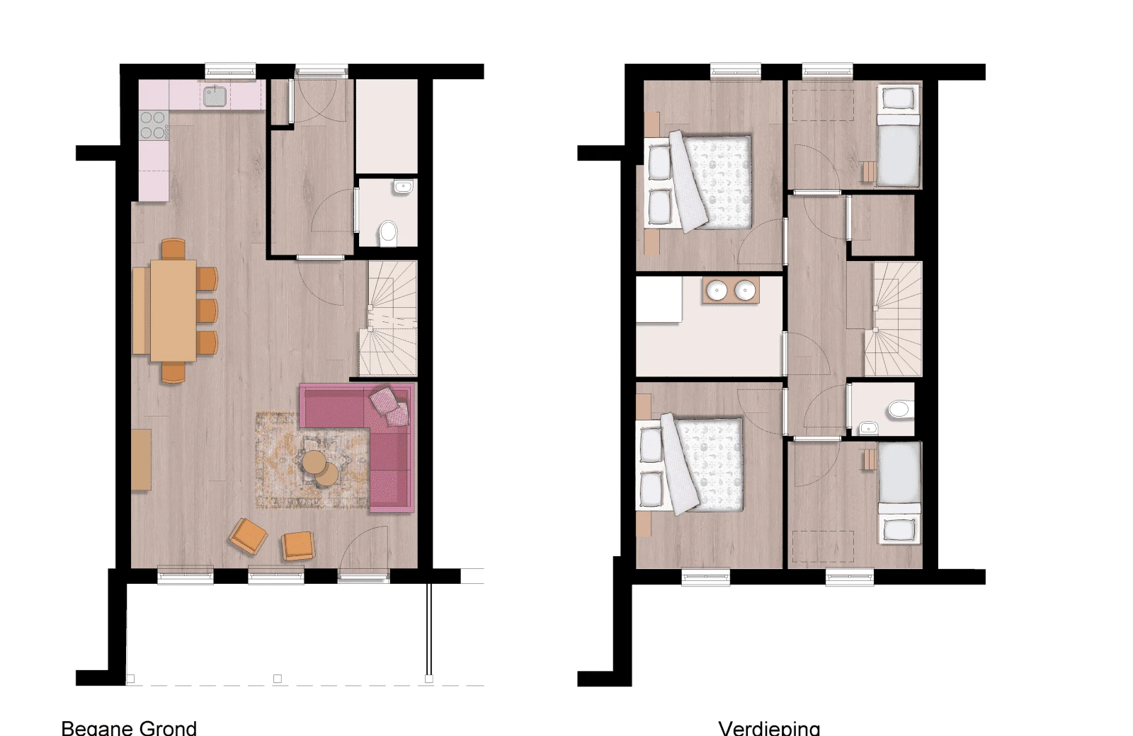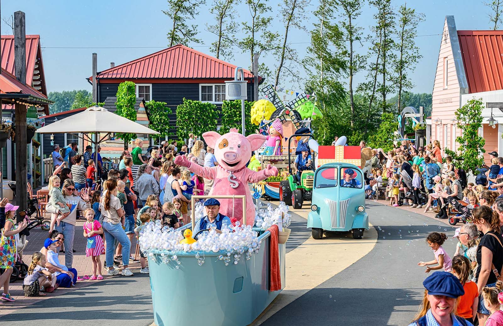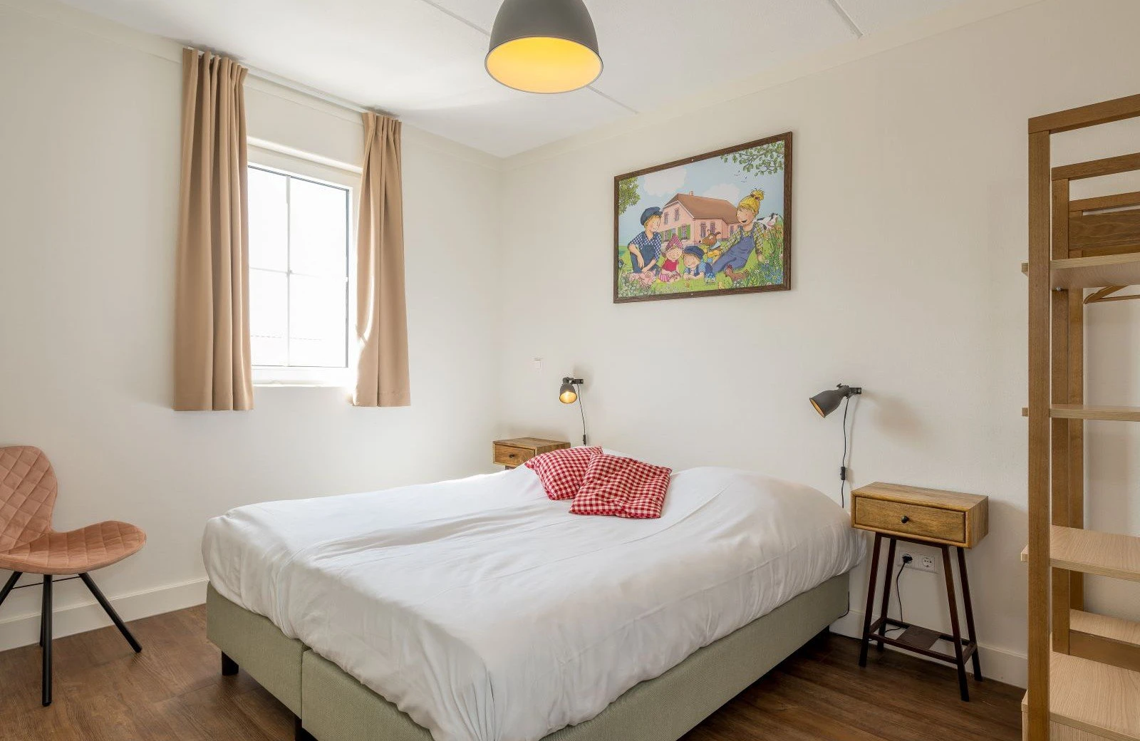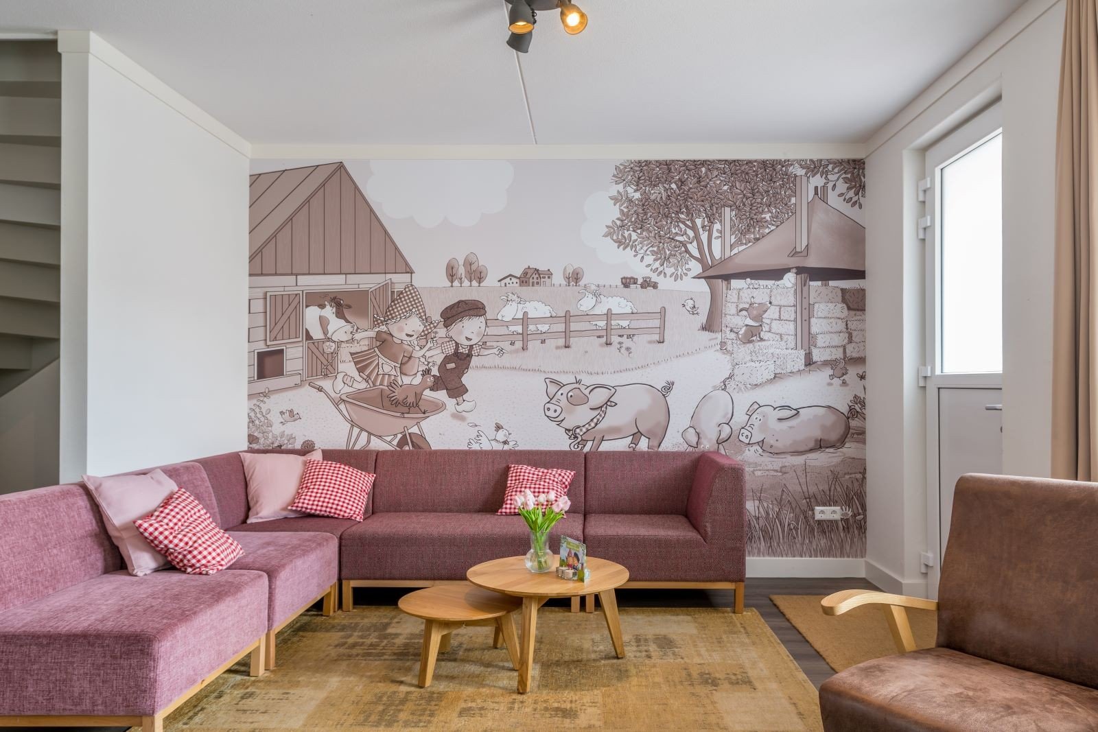 This accommodation is part of a row of attached houses. The 8-person Village Street consists of two floors and is fully equipped. The house is fully furnished in Sebastian the pig style and has a cosy living room with sitting and dining area. As Sebastiaan the pig is known for his cheerful character, you can be sure of a happy pink stay.